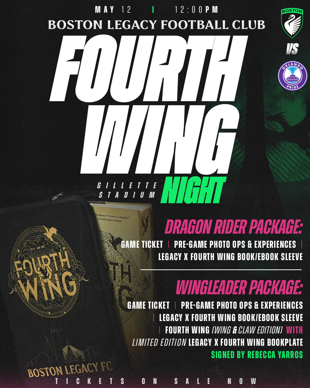 Fourth Wing Night at Ball Arena in Denver, CO is on April 8! Tickets will go on sale Friday, December 12 at 10 am MT (12 pm ET / 9 am PT). You can click the link below to see more about the event and what the ticket packages include, and to sign up to receive the ticket link the day of the sale.